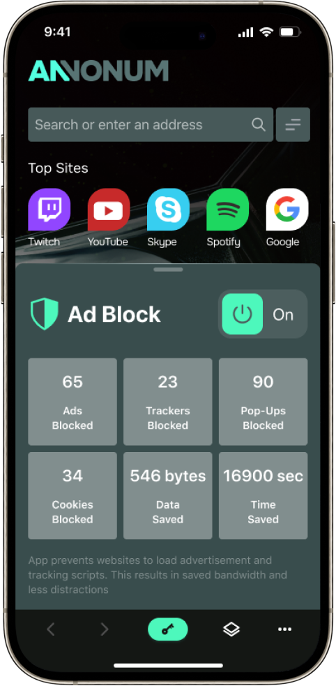 Annonum isolates each site you visit, ensuring that they cannot track your activity. Your browsing history and cookies are cleared when you are finished